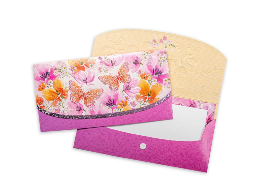 Obálka na vouchery a iné darčekové poukazy z kategórie luxusných obálok s kartičkou na text so samolepiacim uzatváraním.