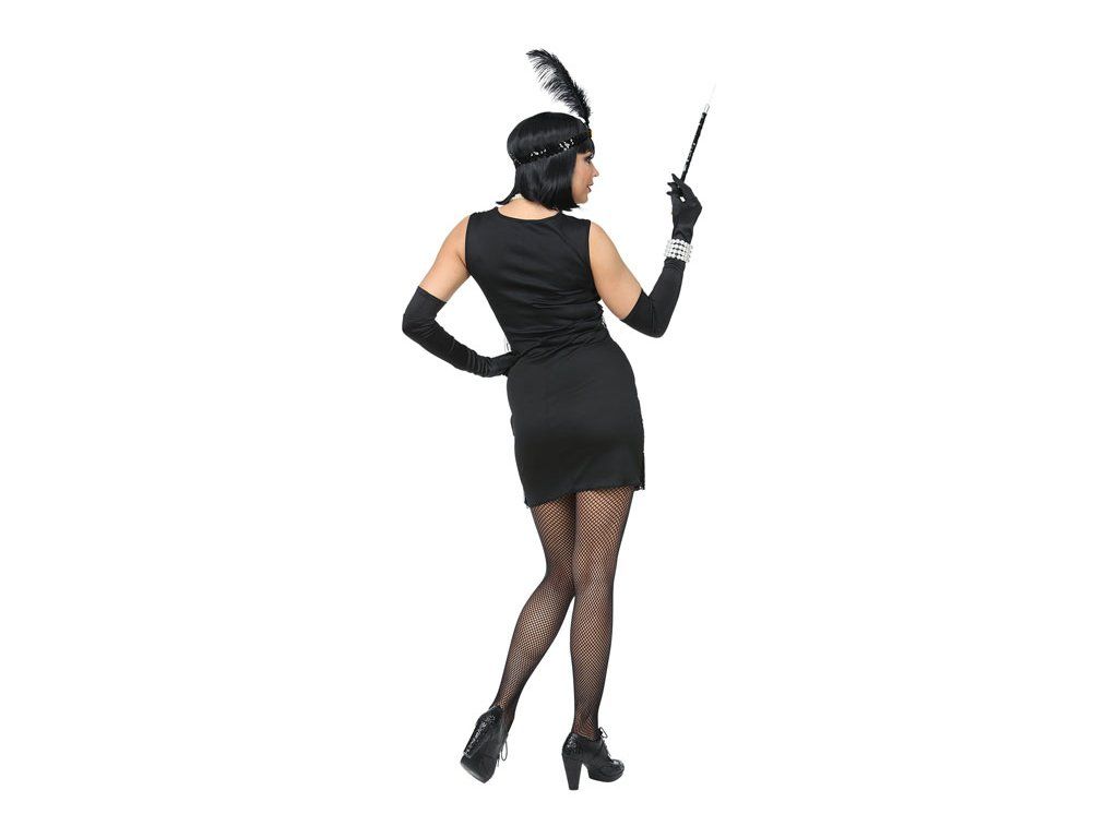 Dámsky čierny kostým v štýle „Roaring 20s“ flapper tanečnice, elegantný prevlek, veľkosť XL