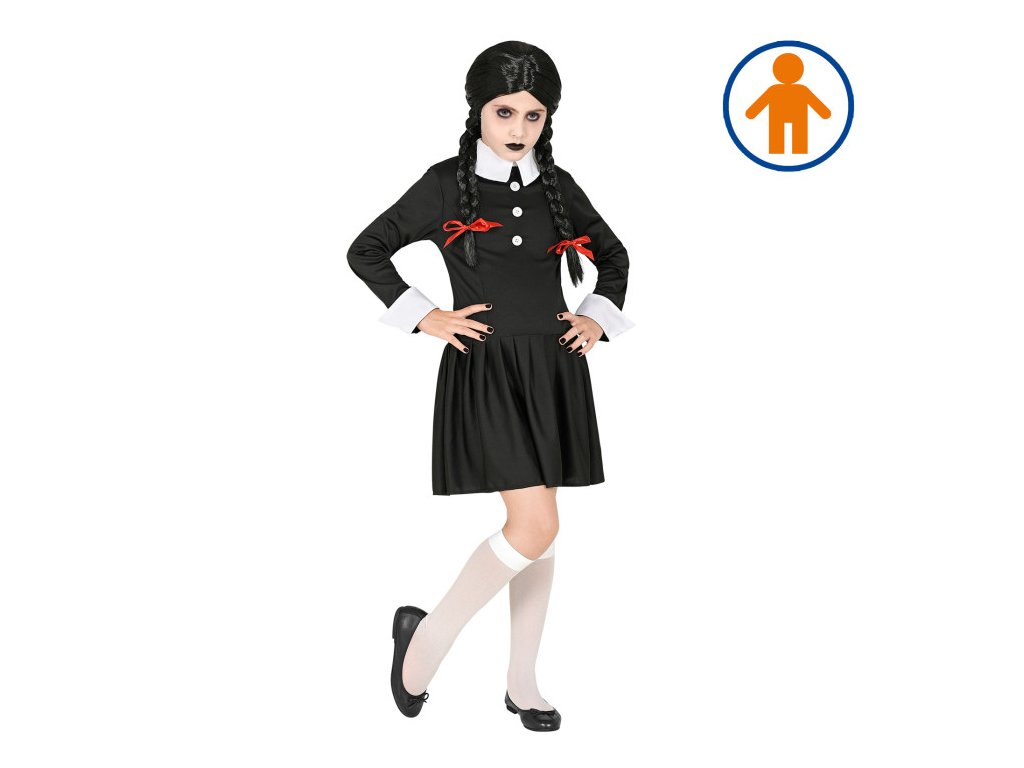 Detský kostým – „Dark Girl“ čierne šaty s bielym golierom (veľkosť 128 cm)