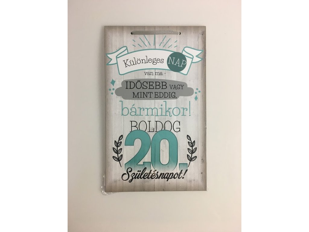 Drevená tabuľa stredná s maďarským nápisom "Boldog 20. születésnapot"