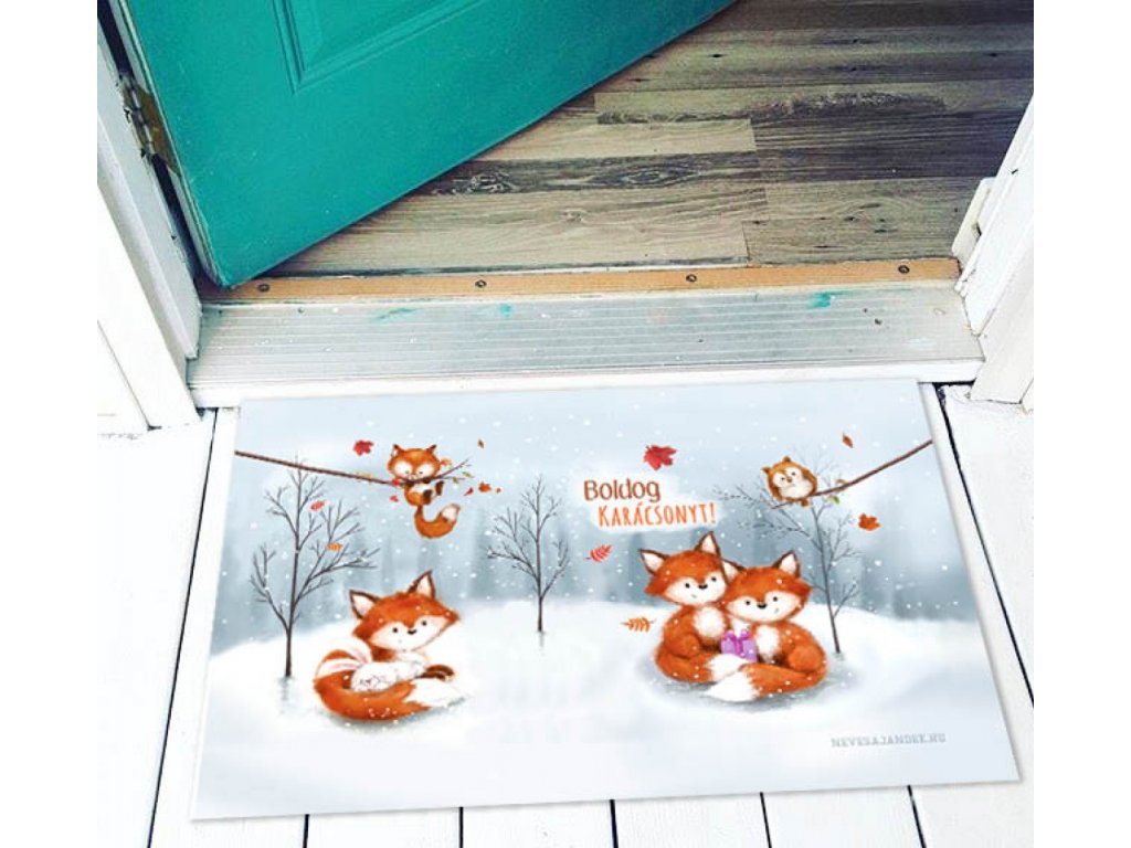 Koberec s maďarským nápisom "Boldog karácsonyt - rókás"