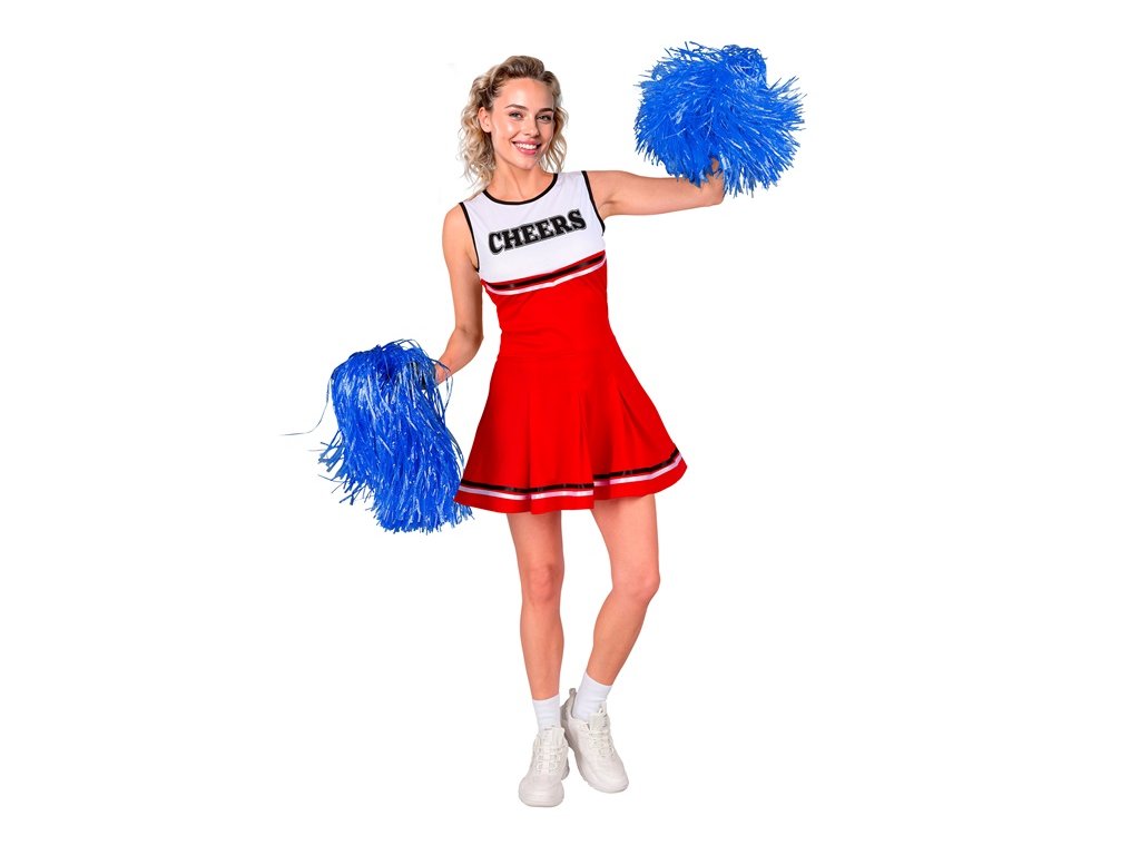 Atraktívny a energický kostým roztlieskavačky pre dospelých, pozostávajúci zo šiat, ktorý je ideálny na karnevaly, tematické párty, športové oslavy, Halloween alebo kostýmové podujatia. Športový dizajn dodá dynamický a zábavný vzhľad, ktorý zaručene upúta pozornosť.