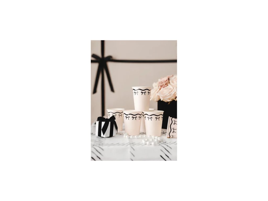 Papierové poháre „Happy Birthday” s čiernou mašľou – 220 ml, 6 ks