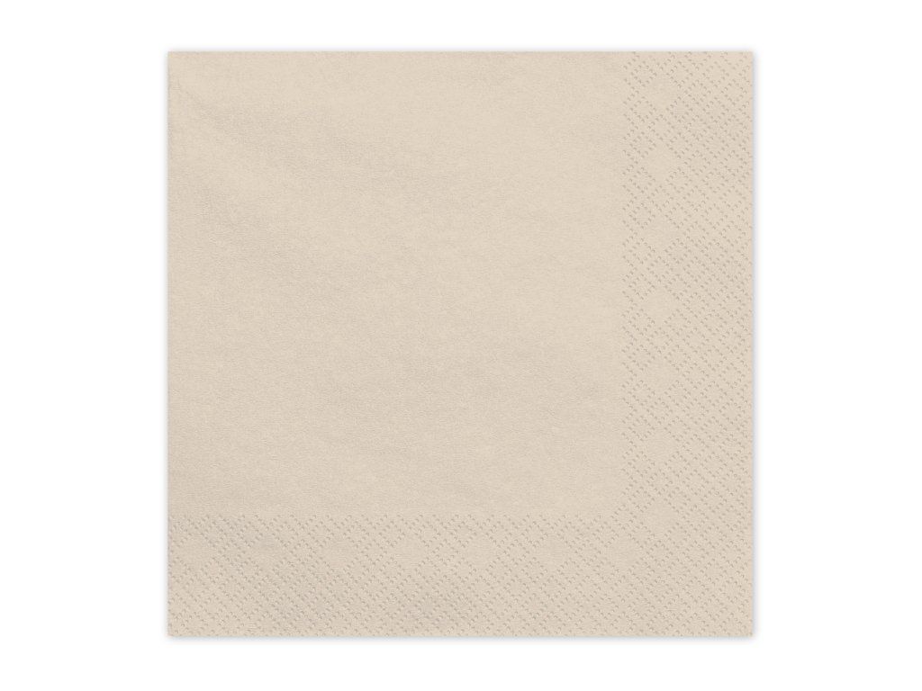 Elegantné béžové papierové servítky, ideálne na slávnostné prestieranie alebo každodenné použitie. Praktické a štýlové doplnky pre každý stôl.