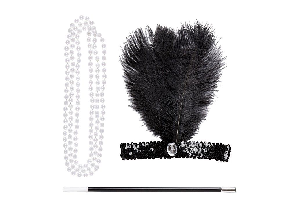 RETRO SÚPRAVA FLAPPER 20. ROKOV ČELENKA S PIERKOM, NÁHRDELNÍK