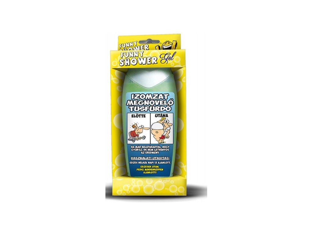 Sprchový gél s maďarským nápisom "Izomzat megnövelő tusfürdő"