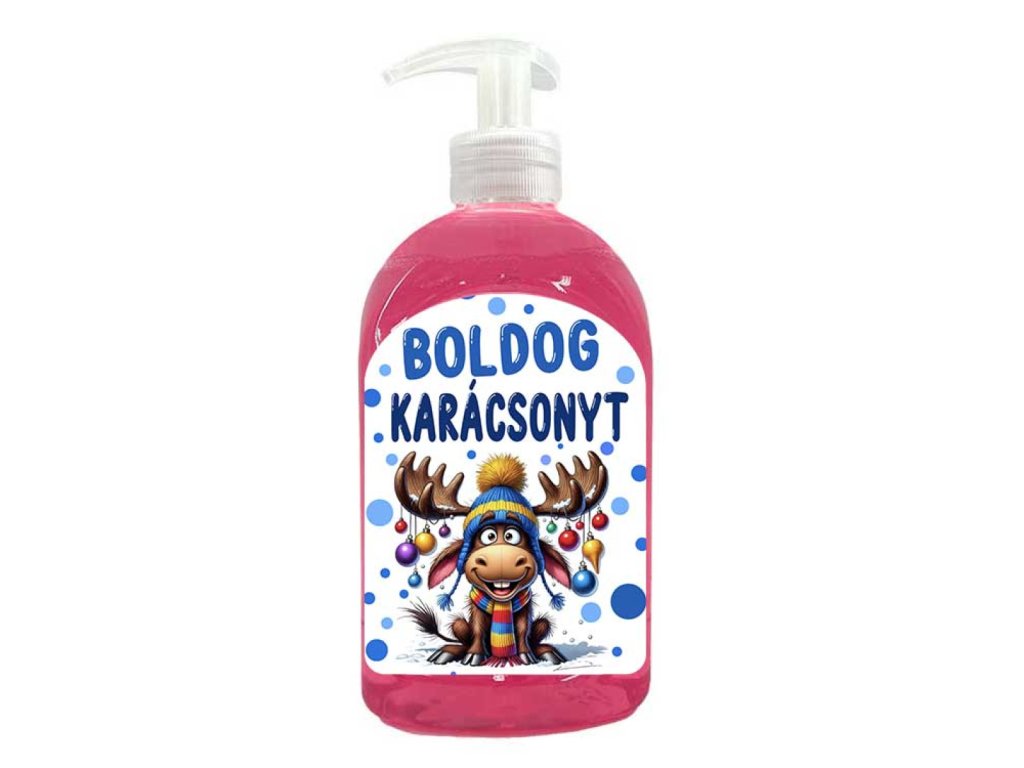Veselé vianočné tekuté mydlo s roztomilým motívom sobieho chlapčeka a nápisom „Boldog Karácsonyt!“ (Veselé Vianoce), ktoré spríjemní každodenné umývanie rúk počas sviatočného obdobia.