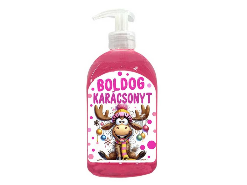 Veselé vianočné tekuté mydlo s roztomilým motívom sobieho dievčatka a nápisom „Boldog Karácsonyt!“ (Veselé Vianoce), ktoré spríjemní každodenné umývanie rúk počas sviatkov.