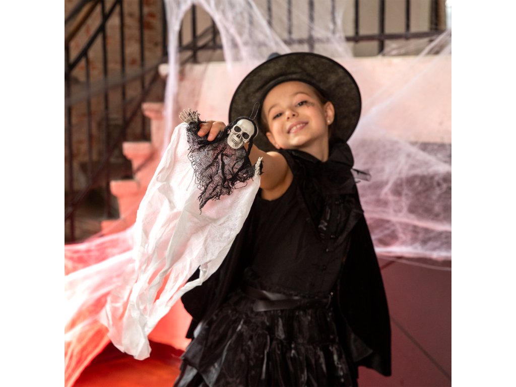 Táto závesná figúrka v tvare kostry alebo symbolu smrti je ideálna na výzdobu interiérov (napr. strop, dvere) alebo exteriérov (terasa, vstupné schody).